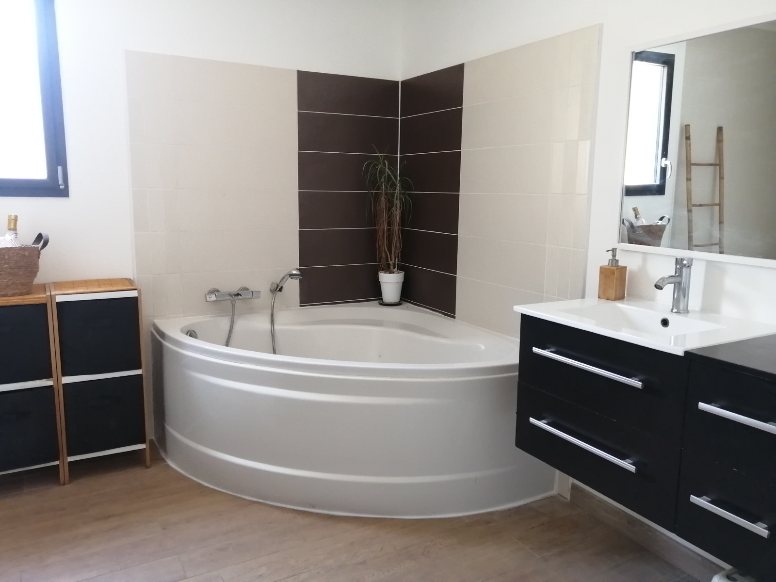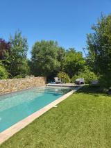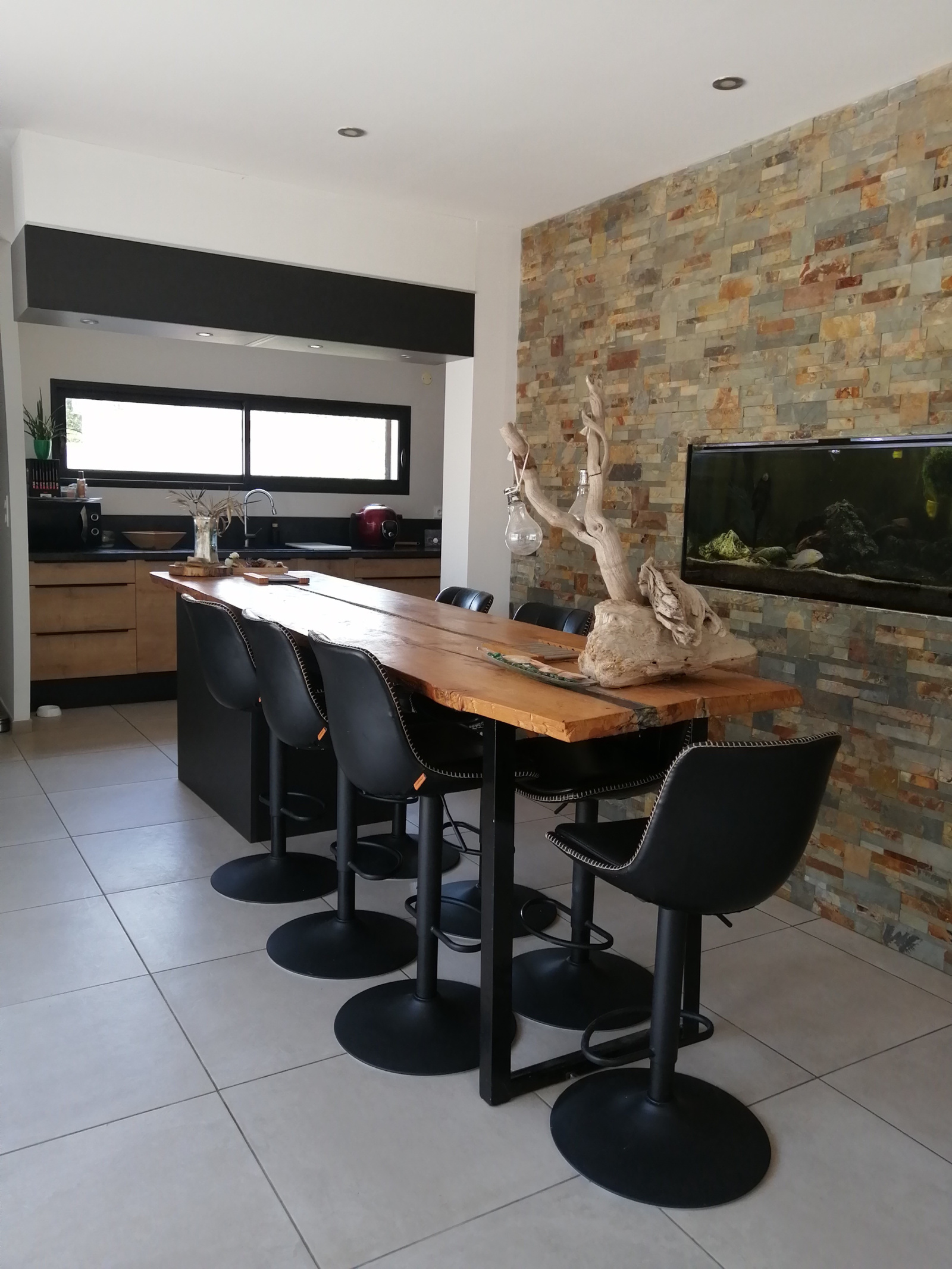 Maison économique et économe en énergie grâce à son insert double foyer, sa climatisation réversible, son chauffe-eau thermodynamique et ses panneaux solaires (environ 2 000 € de rendement annuel).
