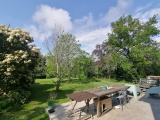 À l’extérieur, le jardin aménagé constitue un véritable havre de verdure intime : arbres fruitiers, potager et massifs fleuris créent une atmosphère unique, idéale pour profiter des beaux jours. Le tout s’étend sur une parcelle d’environ 1 754 m².