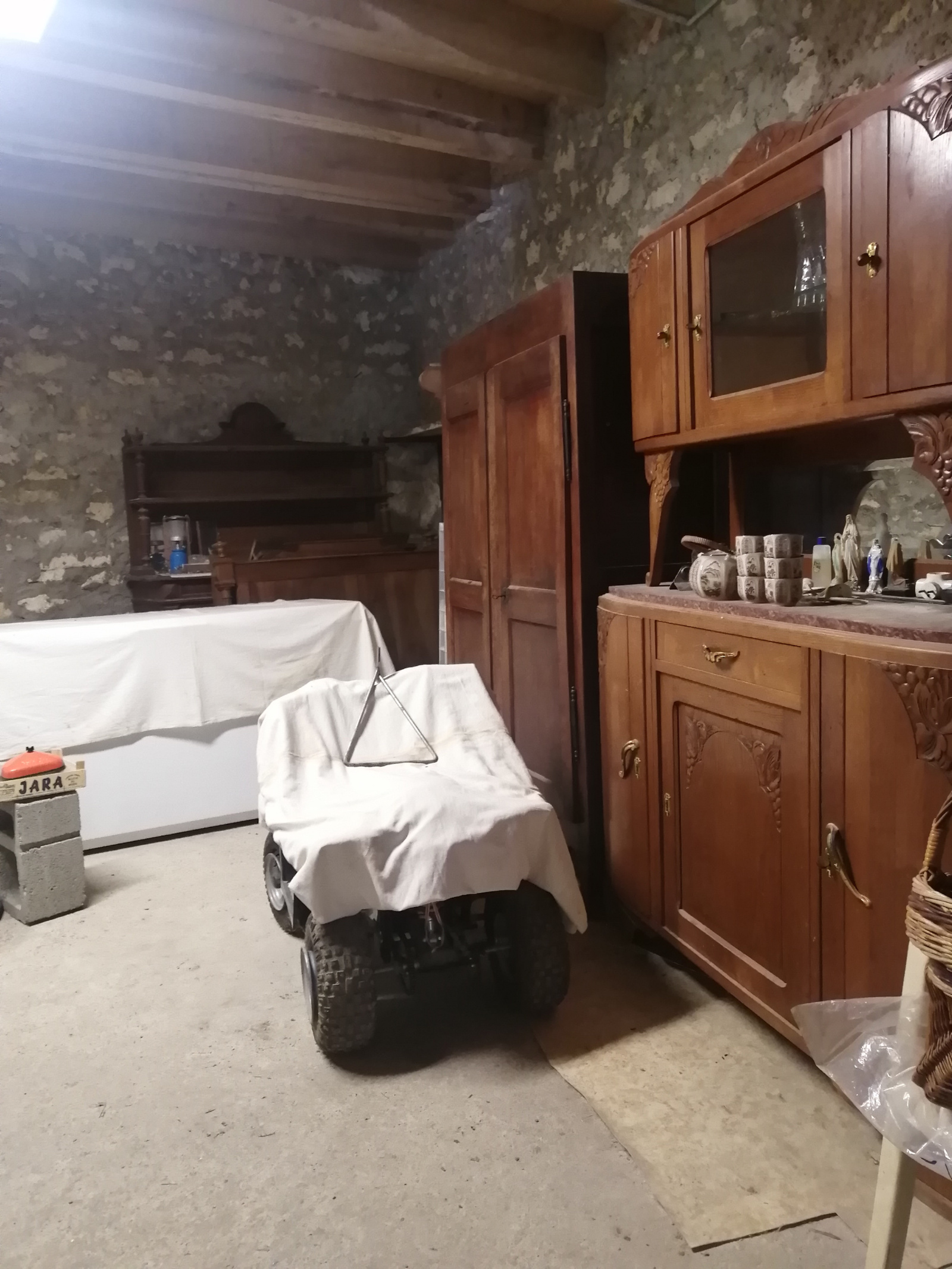 À l’étage, trois chambres et une chambre à terminer d’aménager, ainsi qu’un second WC. Une salle d’eau supplémentaire peut facilement être aménagée selon vos besoins. Un garage et un hangar ouvert complètent l’ensemble.