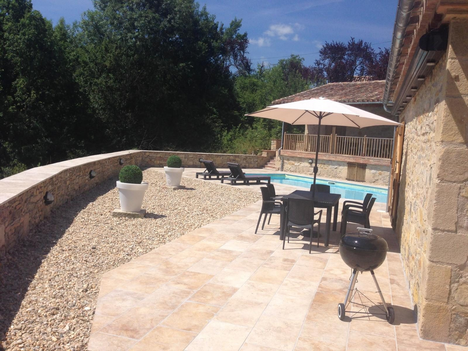 ENSEMBLE IMMOBILIER EN PIERRE, Dans un hameau paisible à 3 minutes du village de Vaour et 25 km de Gaillac, découvrez ce superbe ensemble immobilier en pierre avec deux maisons indépendantes, chacune dotée de sa piscine et terrasse. Maison 1 ? 93m² environ Salon lumineux Cuisine indépendante aménagée et équipée Chambre avec salle de bain au rez-de-chaussée Chambre avec salle d?eau à l?étage Maison 2 ? 97m² environ Salon confortable Salle à manger conviviale Cuisine indépendante aménagée et équipée Salle de bain Deux chambres dont une avec salle d'eau Grand garage d'environ 29m² et plus de 4 hectares de bois pour profiter pleinement de la nature. Le charme de la pierre et des poutres apparentes, une vue imprenable sur la forêt. Commerces et écoles à seulement 3 km à Vaour. Gaillac est à 25 km. Reportage photo disponible sur demande. Contactez l'équipe d?Aramisimmo 54 place du Griffoul, 81600 GAILLAC